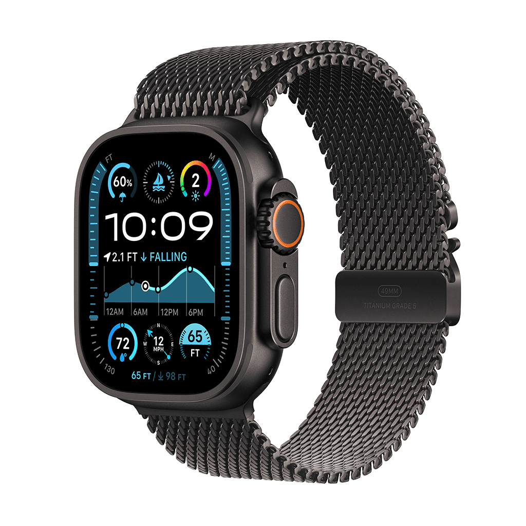Apple Watch Ultra 2, the ultimate sports and adventure watch, is now available in a satin black titanium finish. It features multi-day battery life, precision dual-frequency GPS and Apple’s brightest display ever. It also has a durable titanium case, sapphire front crystal and customisable Action button.